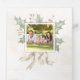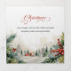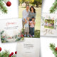 Este bonito diseño presenta un gráfico de texto de caligrafía "Navidades" personalizado y un verso de Navidades sentidos sobre un fondo de color agua, incluyendo un apacible paisaje cubierto de nieve con cabañas, pino y holly. Los paneles presentan una holly opaca complementaria, plantillas de fotos y campos de texto para su mensaje y personalización.