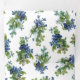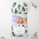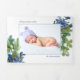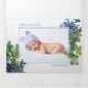 Plantilla de foto de ramas de pino cubiertas de nieve y violetas de inspiración vintage con campos de texto editables. En el interior se presenta un patrón floral complementario sin inconvenientes, una plantilla de fotografía adicional y campos de texto editables.