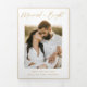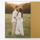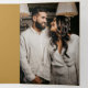 ¡Celebra tu primera Navidad como pareja casada con nuestra tarjeta de fotos triplicada casada y brillante! La parte delantera de la tarjeta incluye "Casado y brillante" en un guión moderno con letras doradas. La foto de su boda se muestra con un borde blanco de borde áspero. Personalice la parte delantera de la tarjeta agregando un saludo personalizado con los nombres que se muestran a continuación. El interior de la tarjeta contiene dos fotos con espacio para un mensaje personalizado en el medio. La solapa interior exterior presenta una cuarta foto vertical. El centro exterior de la tarjeta muestra un fondo dorado con un patrón estrella brillante blanco.