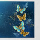 Composición de vuelo, joyería, oro y mariposas oscuras sobre fondo de joyería texturada. Mariposa dorada.