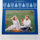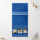 Crea tus propias 5 tarjetas de vacaciones triplias de fotos con este elegante diseño interreligioso azul claro y azul oscuro Merry Happy Everything. El diseño horizontal incluye tres de tus fotos favoritas en la parte delantera, con esquinas redondeadas y bordeadas por un marco azul medio delgado sobre un rico fondo azul real. Correspondiendo el texto azul pálido en un elegante tipo de letra de guión en la parte superior se balancea con una fila de cinco Menorahs Hanukkah azul pastel y cuatro árboles navideños azul claro coincidentes en la parte inferior. Las solapas plegables de estas tarjetas de vacaciones de lujo muestran dos fotos más dentro con marcos de borde azul medio sobre un fondo azul oscuro. La sección central interior tiene texto personalizado en azul claro con el borde de los Menorahs azul pálido y árboles repetidos en la parte inferior. Para las familias mixtas que celebran Chrismukkah solo por desear un diseño multicultural de tarjetas de vacaciones de estilo interreligioso, estas tarjetas triples azul claro y azul oscuro Feliz Feliz Feliz Todo, diseñadas con tus fotos favoritas, son una manera elegante de difundir alegría de vacaciones este año.