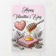 La tarjeta del Día de San Valentín feliz presenta un diseño de estilo de arte de boceto, con miel que gotea sobre un delicioso waffle rosa. La imagen está acompañada de la frase "Me eres dulce" dentro de un corazón, lo que añade un toque personal y divertido. Dentro de la tarjeta, el mensaje dice: "Dulces para mi dulce, por siempre y siempre!" En la parte posterior de la tarjeta, el mensaje dice: "Soy tu miel, goteando de amor". Todo el diseño tiene un atractivo magnético. Este encantador diseño no solo es visualmente impactante, sino que también evoca una sensación de alegría y diversión, lo que lo hace perfecto para cualquiera que desee expresar su amor y admiración.
