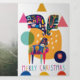 Tarjetas de felicitación plegables de Navidad Colorido Reno Abstracto Personalizado de Ricaso - una tarjeta de vacaciones encantadora - agregue sus propias fotos y texto a esta maravillosa tarjeta de Navidad