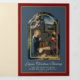 Esta encantadora tarjeta de Navidad religiosa plegable en tres partes presenta una hermosa pintura religiosa católica tradicional de Navidad personalizada,