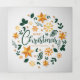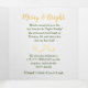 La portada de esta triplemente célebre tarjeta de felicitación Holiday tiene una corona de Navidades de color verde bonito y oro hecha de imágenes libres flotantes de temporada, incluyendo estrellas, copos de nieve y hojas. En el centro está el estilizado texto "Feliz Navidad y Feliz Año Nuevo". En el interior, hay plantillas de fotos en el primer y tercer panel. El panel intermedio tiene el texto de su personalizado en verde y oro contenido en cuatro campos. La parte posterior contiene otra plantilla de foto y una segunda imagen de la corona con el texto de su personalizado dentro. ¡Elegante y festivo!