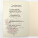 Esta hermosa tarjeta de Navidades religiosos triplicada incluye una hermosa imagen personalizada de Navidades tradicionales católicos de la Virgen María, San José y ángeles mirando al Niño Cristo mientras él yace en el pesebre. Adentro hay un bello poema de St. Robert Southwell. El Canto Ardiente Mientras yo en la noche del invierno ardiente estaba temblando en la nieve, Sorpresa, yo estaba con un calor repentino que hizo que mi corazón brillara; Y levantando un ojo temeroso para ver qué fuego estaba cerca, apareció un bonito que ardía en el aire; que, quemado con calor excesivo, tales inundaciones de lágrimas derramaron Como si sus inundaciones extinguieran sus llamas que con sus lágrimas aparecían. se alimentaron las orejas. "¡Ay!", dijo, "pero recién nacido, con ardientes calores que fremo, pero ninguno se acerca a calentar sus corazones ni a sentir mi fuego, ¡pero yo! Mi pecho inmaculado es el horno, las espinas que leen el combustible, el amor es el fuego, y suspira el humo, las cenizas la vergüenza y el desprecio; el combustible que la justicia se pone, y Mercy sopla los carbón, El metalizado en este horno que se forja son almas desheredadas de los hombres, por lo que, como ahora en llamas, los voy a trabajar para su bien, así me derredaré en un baño para lavarlos. mi sangre". Con esto se desvaneció de vista y rápidamente se encogió, y luego me acordé de que era el día del Navidad.