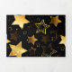 Tarjeta Festiva Tríptica Patrón continuo con estrellas doradas