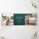 Añada un total de seis fotos a este hermoso diseño de tarjeta fotográfica de vacaciones en un único tríplio adornado con estrellas y con tipografía con letras a mano. Front contiene tres fotos cuadradas con "deseándote paz, amor y alegría" en tipografía con escritura con letras blancas en un fondo verde festivo de cazador. Personalice el interior con un mensaje preimpreso del personalizado o una carta de actualización de "año en revisión".