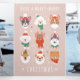 Esta ilustración linda y conmovedora presenta varias razas de perros, cada uno vestido con ropa festiva acogedora como bufandas y sombreros. El fondo rosa claro complementa las caras adorables, trayendo alegría y calidez a la temporada navideña.