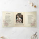 Esta encantadora tarjeta de Navidad religiosa plegable en tres partes presenta una hermosa pintura religiosa católica tradicional de Navidad personalizada,