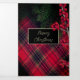 Tarjeta Festiva Tríptica Tartán colocado rojo guión blanco personalizado