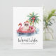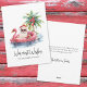 Get into the holiday spirit with this cute and whimsical Christmas card featuring a pink watercolor flamingo wearing a Santa hat. A little sprig of holly sits at the top of the design, while more holly leaves and berries are scattered along the bottom for a festive touch. The playful yet elegant layout makes this card a charming choice for anyone who loves a fun twist on classic holiday themes.