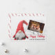 Añade tus nombres y fotos a esta divertida tarjeta de Navidades cautivadores con un lindo gnome de Navidades usando un sombrero de Santa en la nieve.