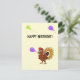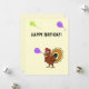 Turquía lindo con globos en tarjeta de cumpleaños de fondo amarilla
