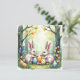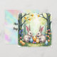 Two little gray Easter Bunnies sort out the eggs to hide along a forest path lined with spring flowers. Very cute, would be fun for kids.