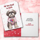 La parte delantera de esta linda tarjeta El día de San Valentín tiene una imagen de un adorable pequeño perro shih Tzu usando su suéter de San Valentín. El texto de arriba dice "Todo lo que necesitas es amor" El interior completa el pensamiento, y también dice "Feliz Día de San Valentín". Todo el texto, el frontal y el interior pueden ser personalizados a cualquier otra cosa que prefieras.