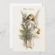 Un ángel sostiene la tarjeta de vacaciones Vintage de los Navidades.