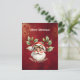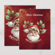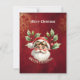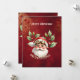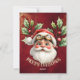 Un caprichoso y caprichoso Santa Claus con un fondo rojo profundo adornado con hojas y bayas huecas. Santa lleva un gorra rojo con guarnecido blanco y un par de gafas al estilo del steampunk con acentos dorados. Su barba blanca y sus mejillas rosadas le dan un aspecto alegre. Las palabras "MERRY CHRISTMAS" están escritas en una fuente decorativa en la parte inferior de la imagen.