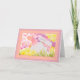 Tarjeta de felicitación de Pascua. El ping-pong está aquí, al igual que este bonito conejito rodeado de flores y enmarcado con un borde.