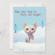 Una linda imagen de un gato blanco sentado en un banco de nieve. Este lindo gatito tiene ojos amarillos brillantes y orejas rosas altas. Se puede PERSONALIZAR el texto interior.
