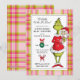 No seas un Grinch, ¡celebra al pequeño! Esta invitación caprichosa y personalizable presenta una ilustración rara y conmovedora de El Grinch sosteniendo a un bebé, listo para las fiestas. Con la cita alegre "¡Un pequeño que está a punto de llegar!" y un borde de cuadros divertido y festivo, esta invitación es perfecta para anfitriones que buscan organizar una Grinchmas Baby Shower memorable. Agrega fácilmente la fecha, hora, ubicación y detalles de RSVP para planificar un evento de vacaciones verdaderamente único y lleno de travesuras.