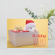 Tarjeta Festiva Un regalo envuelto y un conejo con Santa