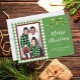 Deleite a su familia y amigos con esta tarjeta de Navidad de un solo foto con diseño de houndstooth verde y blanco que presenta una foto principal de su familia. El saludo Feliz Navidad está escrito con una tipografía de escritura, mientras que la tipografía del nombre de la familia es una tipografía decorativa en mayúsculas. Hojas y bayas de acebo brillantes proporcionan un tema navideño y la foto de la familia está delineada con un rojo oscuro. El diseño de houndstooth proporciona un gran fondo para la foto, mientras que el verde sólido da contraste al diseño. ¡Agregue el nombre y la foto de su familia y sorprenda a sus seres queridos con una hermosa tarjeta de Navidad! Diseño ©Vann-Horn Creative Photo & Designs.