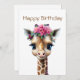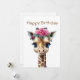 Tarjeta Festiva Una jirafa de bebé con flores y hueso