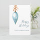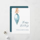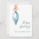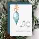 Personalice esta plantilla de tarjeta de felicitación navideña empresarial para una tarjeta con arte original único. Yo pinté a mano este simple adorno navideño azul verdoso. Las hojas botánicas doradas suspenden un adorno navideño de estilo vintage sobre un fondo liso. La elegante letra moderna que dice "Felices Fiestas" y su empresa están en azul turquesa. En el reverso puede agregar un saludo personalizado, el logotipo de su empresa y la información de contacto de su negocio. Todo el texto limpio y elegante es editable. Esta tarjeta de felicitación navideña corporativa minimalista es ideal para sus clientes, empleados o clientes.
