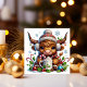Tarjeta Festiva Vaca de las Tierras Altas con cacao caliente