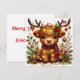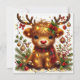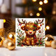 Celebre la temporada con esta encantadora tarjeta navideña plana que presenta a una vaca de las Tierras Altas disfrazada de reno, completa con una bufanda de cuadros y luces navideñas brillantes. Una excelente opción para aquellos que aman los saludos navideños acogedores y extravagantes.