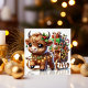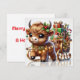 Envía alegría festiva con esta encantadora tarjeta plana de vacaciones que muestra a una vaca de las Tierras Altas tirando del trineo de Santa, adornado con luces y regalos de vacaciones. Una forma encantadora y única de celebrar la magia de la temporada.
