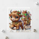 Tarjeta Festiva Vaca de las Tierras Altas tirando del trineo de Sa