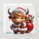 Tarjeta Festiva Vaca de Santa Highland con saco de regalo