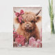 Tarjeta Festiva Vaca Highland con Navidades rosados de vaca