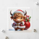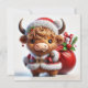 Tarjeta Festiva Vaca Highland Santa con Bolsa de Regalos