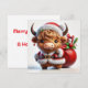 Celebre la temporada con esta divertida tarjeta de vacaciones plana que presenta a una vaca Highland vestida de Santa, llevando una bolsa llena de regalos. Una tarjeta perfecta para difundir alegría y agregar un toque de humor a sus saludos navideños.