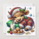 Lleva calidez a la temporada con esta tarjeta de vacaciones plana y acogedora que presenta a una vaca de las Highlands vestida con pijamas festivas, rodeada de galletas y leche para Santa. Un diseño dulce y encantador para que disfruten personas de todas las edades.