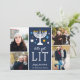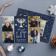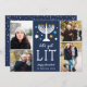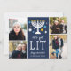 Es hora de encenderse...¡la menorah, es decir! Funny tarjeta de fotos de Hanukkah muestra "vamos a iluminarnos" debajo de un ilustracion de menorah acentuado con estrellas azules y blancas. Añade cuatro de tus fotos favoritas en un collage, junto con tus nombres y un saludo personalizado Hanukkah. Personalice la parte posterior con una foto adicional si lo desea.
