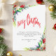 Comparte la alegría de la temporada con esta hermosa tarjeta de vacaciones que presenta un elegante follaje verde de invierno y un audaz guión rojo que dice "Feliz Navidad". Personalizar con tu propio mensaje, nombre y fecha para un toque personal. Perfecto para enviar saludos festivos a la familia, amigos o clientes.