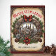 Prepárate para las fiestas en elegante estilo industrial con esta tarjeta de Navidad steampunk. El diseño combina elementos festivos tradicionales y nostalgia con intrincados engranajes y mecanismos de la época industrial victoriana. La clásica corona de abeto está decorada con piñas, cinta roja y flor de poinsettia, así como con una capa de maquinaria metálica. En el centro de la corona hay más maquinaria de estilo vintage, coronada con velas góticas antiguas. Una tarjeta ideal para el entusiasta del Steampunk.