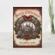 Prepárate para las fiestas con un estilo industrial elegante con esta tarjeta de Navidad Steampunk. El diseño combina elementos festivos tradicionales y nostalgia con intrincados engranajes y mecanismos de la época industrial victoriana. La clásica corona de abeto está decorada con piñas, cinta roja y flor de poinsettia, así como con una capa de maquinaria metálica. En el centro de la corona hay más maquinaria de estilo vintage, coronada con velas góticas antiguas. Una tarjeta ideal para el entusiasta del Steampunk.