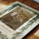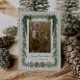 Customize this Velvet Green Bow, Stripes, and Garland Framed Christmas Photo Card with all your own details. Features whimsical hand drawn frame with area for you to upload your own photo.