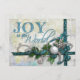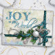 Diseño de capas ricas en verde azulado profundo y plateado con cintas de satén, cuentas, estrella de filigre plateado, llave de diamante, adorno plateado y holly. El texto es grabado en relieve con un toque de purpurina. El fondo está texturado y angustiado con brillantes de la tinta. El texto interno es personalizable. Productos a juego disponibles.
