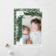 Guirnalda de Pino Verde Rústica con Patrón Botánico Blanco en la parte posterior Foto Tarjeta de Navidad de Navidad.