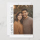 A sleek and modern New Year photo card featuring a bold vertical “Happy New Year” greeting that adds stylish impact while keeping the focus on your photo. The clean white layout creates a fresh, minimalist look, complemented by personalized family details and the year for a polished finish. The back includes space for two additional photos, giving you a simple yet elegant way to share more favorite moments as you welcome the new year.