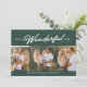 Esta sencilla tarjeta de vacaciones verde oscuro presenta un tratamiento único tipo "es una vida maravillosa" junto con tres fotos y un saludo personalizado. El color de fondo verde de moda es festivo y de diseño y se coordina bien con una gran variedad de fotos. Esta tarjeta de vacaciones es genial como tarjeta de Navidad familiar, tarjeta de Navidad de una pareja e incluso anuncio de un parto festivo. La parte trasera de la tarjeta es un verde oscuro a juego con puntos blancos lindos. Encuentre más colores y estilos en la colección de Lea Delaveris Design. También disponible como descarga de tarjeta de Navidades digitales.