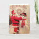 Tarjeta retro con Santa Claus arreglando el gorra del Sr. Snowman.