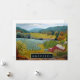 Viñetería en la granja de la hermosa Augusta, Misuri, con un granero, un estanque y árboles coloridos. De una pintura al óleo original de Daniel Fishback.