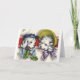 Una imagen vintage de Navidad con dos adorables caniches blancos, un macho y una hembra, que se saludan con un "¡Hola!" para las fiestas. Cada perro lleva un sombrero en la cabeza y un lazo festivo alrededor del cuello, la hembra con un lazo adornando cada oreja. Esta tarjeta está en blanco por dentro para tu propio mensaje y se puede utilizar como tarjeta de notas o tarjeta de felicitación de Navidad.